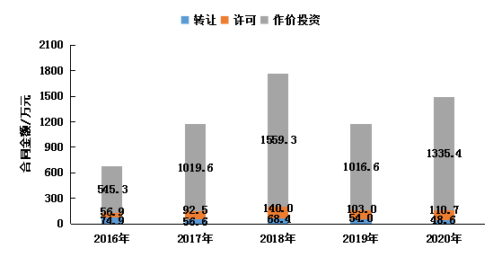 圖3 科技成果轉(zhuǎn)化合同金額變化情況