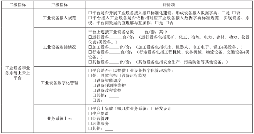 數(shù)據(jù)匯聚能力主要包括工業(yè)設(shè)備上云、工業(yè)大數(shù)據(jù)、工業(yè)APP等三個(gè)方面,從數(shù)據(jù)采集、交換、分析、管理以及面向特定場(chǎng)景的具體應(yīng)用情況來(lái)評(píng)價(jià)工業(yè)互聯(lián)網(wǎng)平臺(tái)數(shù)據(jù)要素匯聚的能力,具體評(píng)價(jià)指標(biāo)和評(píng)價(jià)項(xiàng)表2。