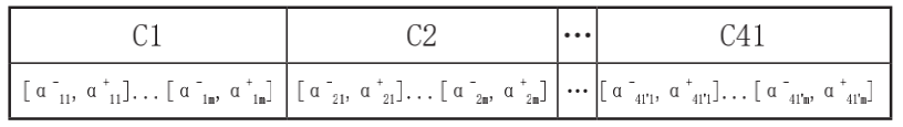 其中專(zhuān)家人數(shù)為m、α-ij、α+ij、分別代表第j位專(zhuān)家對(duì)第α+iji項(xiàng)指標(biāo)評(píng)分的下限和上限,A1-A5、B1-B19、C1-C41分別代表各一級(jí)指標(biāo)、二級(jí)指標(biāo)和三級(jí)指標(biāo)。