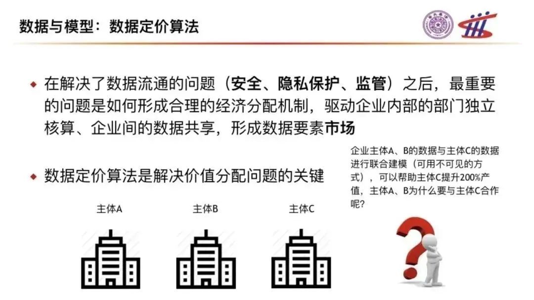 要完成這個(gè)任務(wù),我們就需要建立數(shù)據(jù)要素的定價(jià)理論與算法,這是一項(xiàng)融合了信息經(jīng)濟(jì)學(xué)、博弈論、計(jì)算機(jī)科學(xué)的前沿交叉理論,我們在這項(xiàng)技術(shù)方面進(jìn)行了前沿研究,并與華潤集團(tuán)、華潤銀行一道進(jìn)行了實(shí)踐性的探索與落地。我也感謝華潤集團(tuán)作為央企的代表,提供了豐富的業(yè)務(wù)場景和數(shù)據(jù)場景,我相信這一試點(diǎn)也會不斷擴(kuò)大范圍,覆蓋更多的場景與企業(yè),為我國的數(shù)字經(jīng)濟(jì)發(fā)展提供經(jīng)濟(jì)動力。