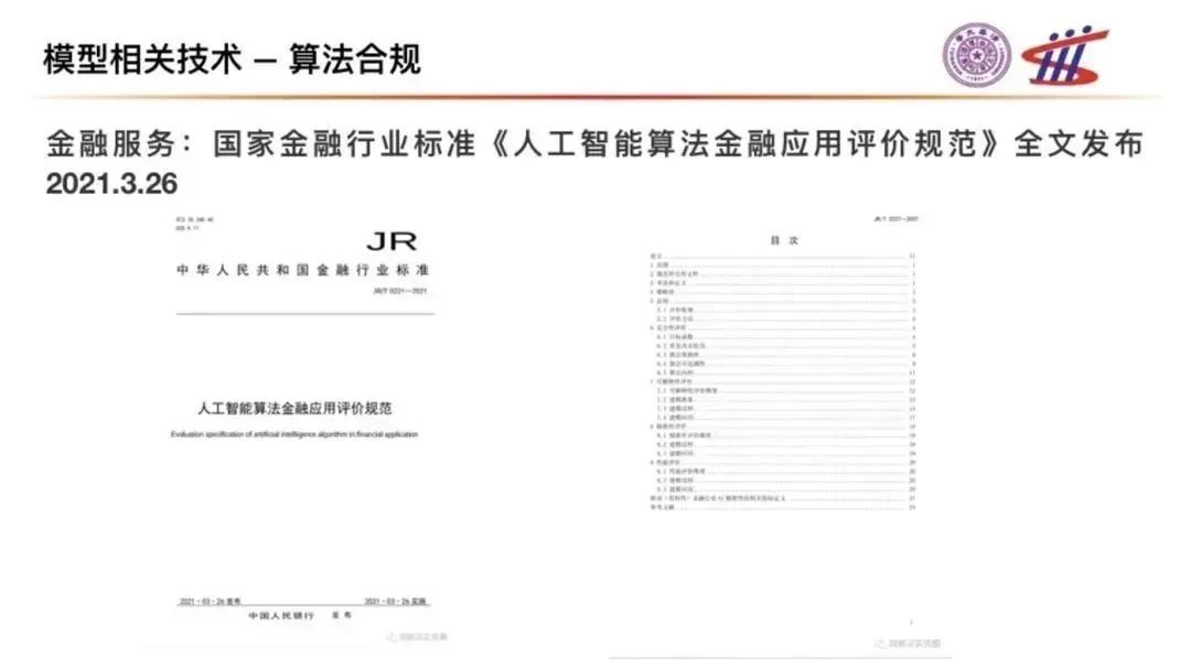 今年3月份,國家金融行業(yè)標(biāo)準(zhǔn)委員會發(fā)布了人工智能算法金融應(yīng)用評價(jià)規(guī)范的標(biāo)準(zhǔn)。