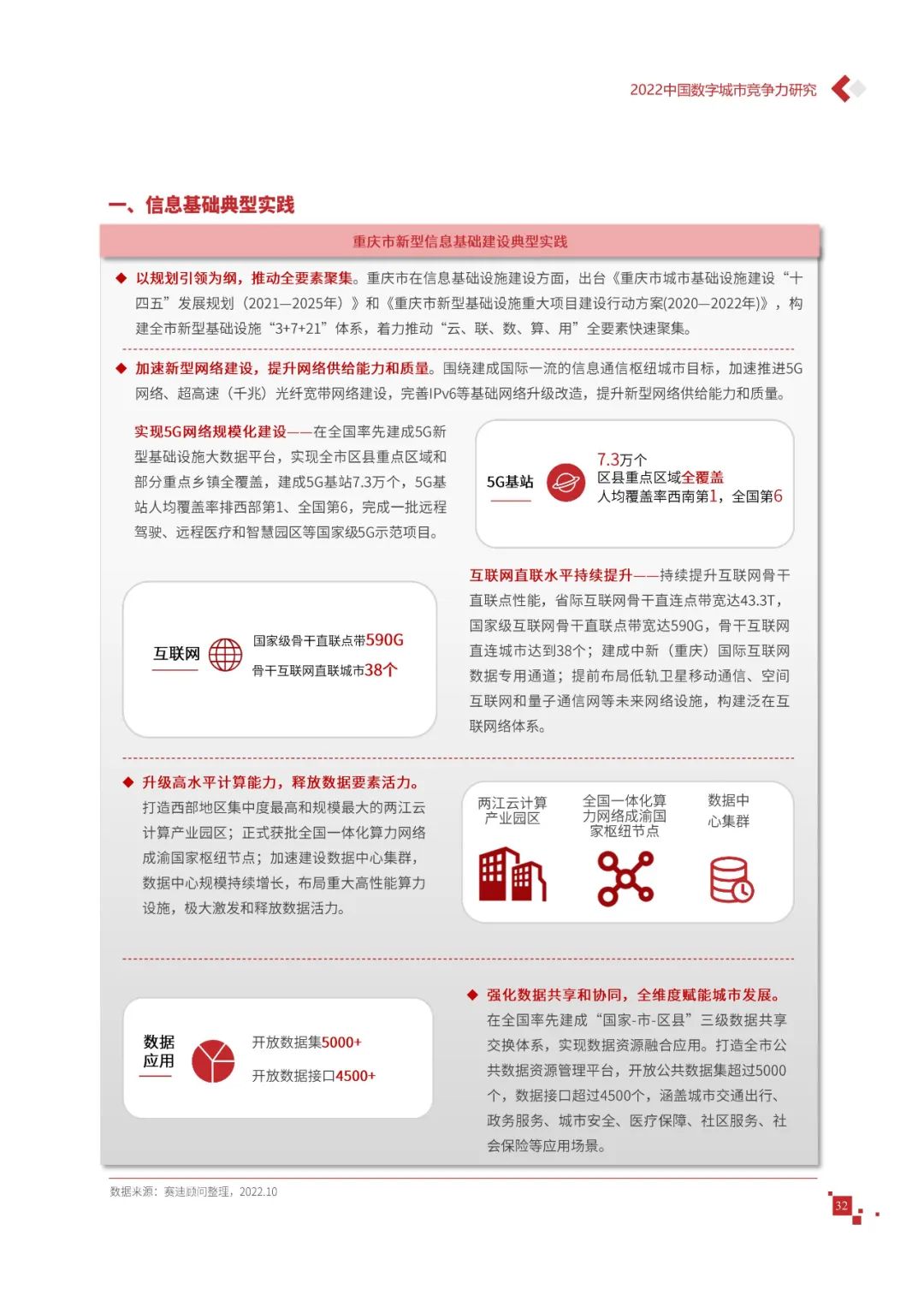 為深入推動城市數(shù)字化、智慧化發(fā)展,樹立優(yōu)秀的城市作為標桿,2022年中國數(shù)字城市百強研究從信息基礎、城市治理、產(chǎn)業(yè)經(jīng)濟、民生服務、技術(shù)創(chuàng)新、低碳發(fā)展等六個方面,全面評估中國數(shù)字城市競爭力,剖析數(shù)字城市建設路徑和方法,為深化中國數(shù)字城市高質(zhì)量發(fā)展奠定基礎。