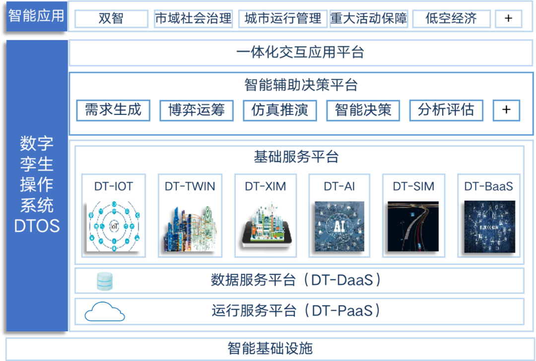 DTOS是運用數字孿生理念設計研發(fā)的廣義操作系統,以統一的架構和技術規(guī)范,集成IoT、AI、仿真、區(qū)塊鏈等前沿技術,打通虛實空間壁壘,形成可支撐多領域智慧應用的智能底座?;贒TOS,我們在國家“雙智”(智慧城市基礎設施與智能網聯汽車協同發(fā)展)、市域社會治理、數字政府等領域落地應用。構建了城市建筑、車輛、道路、基礎設施、社會人群、裝備等治理對象的孿生體,不斷挖掘、沉淀對各個領域系統的認知,并在此基礎上,探索復雜性場景下的系統建模、演化與控制機制,基于“可感、可知、可視、可控”理念,搭建了自適應、自響應、正態(tài)反饋的智能化管理系統,支持實時感知-虛實互生-智能分析-一體化指揮運營-一體化交互展示,有效促進了城市交通、地下生命線系統、市域社會治理、低空安全等治理對象的全生命周期管理與服務。