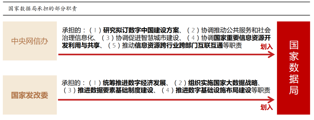 我們認(rèn)為,與科技部、工信部等相比,數(shù)據(jù)局由發(fā)改委管理,更體現(xiàn)“數(shù)字經(jīng)濟(jì)”承擔(dān)“發(fā)展與改革”的重任。