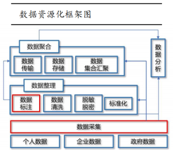 我們認(rèn)為將原始數(shù)據(jù)轉(zhuǎn)化為數(shù)據(jù)資產(chǎn)主要需要經(jīng)過數(shù)據(jù)資源化、數(shù)據(jù)產(chǎn)品化兩個階段。