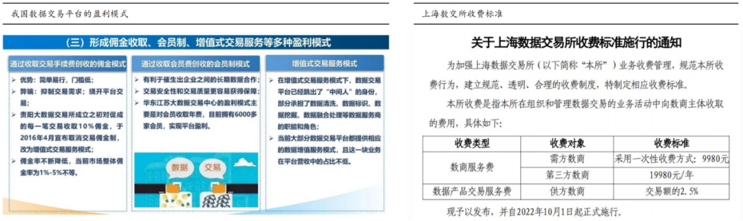 交易手續(xù)費:按交易金額收取傭金的方式;根據(jù)《2022年數(shù)據(jù)交易平臺發(fā)展白皮書》,當(dāng)前市場整體傭金率為1%-5%不等。