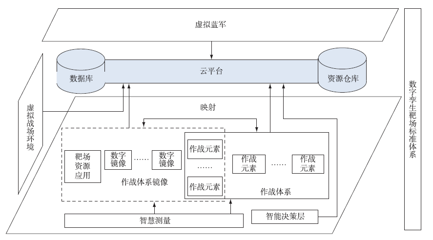 2)作戰(zhàn)體系鏡像:通過整合資源和建立作戰(zhàn)元素的數(shù)字鏡像,形成虛實融合的完整作戰(zhàn)體系,并且能夠按照作戰(zhàn)流程運行,可用于體系級實兵對抗訓(xùn)練。
