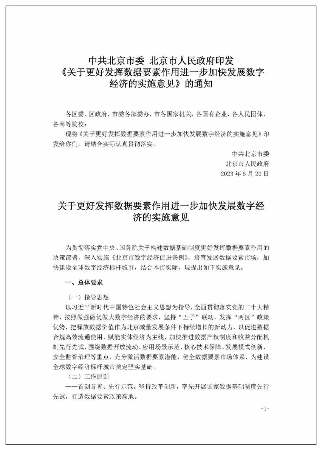 近日,北京發(fā)布《關(guān)于更好發(fā)揮數(shù)據(jù)要素作用進一步加快發(fā)展數(shù)字經(jīng)濟的實施意見》通知,業(yè)界稱“北京數(shù)據(jù)二十條”。