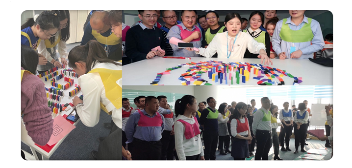 年會中場為團建游戲環(huán)節(jié),將公司全體員工分為六組,以組為單位參加游戲,本環(huán)節(jié)準(zhǔn)備了三個小游戲,分別為尋寶大作戰(zhàn)、手腳并用、多米諾骨牌,通過游戲的開展,促進(jìn)了公司員工之間的積極溝通,互相信任、團結(jié)協(xié)作、進(jìn)一步培養(yǎng)了團隊意識,增強了員工的責(zé)任感與歸屬感。
