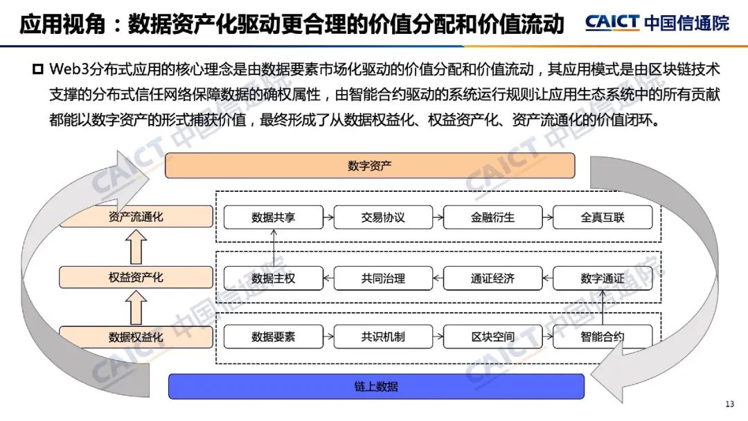1. Web3不只是互聯(lián)網(wǎng)應用層的簡單創(chuàng)新,可能會帶來互聯(lián)網(wǎng)體系架構(gòu)整體性演進和系統(tǒng)性升級。Web3是在區(qū)塊鏈等技術(shù)出現(xiàn)后的下一代互聯(lián)網(wǎng)框架探索,通過共識協(xié)議、加密通信、智能合約、分布式應用等創(chuàng)新設計,重構(gòu)互聯(lián)網(wǎng)應用生態(tài),進一步發(fā)揮數(shù)據(jù)要素價值。但Web3仍處于發(fā)展初期,技術(shù)與產(chǎn)業(yè)的定義尚未完全固定,發(fā)展路徑存在不確定性。2. 在技術(shù)視角,Web3初步形成“四層兩化”的基本框架。其中,設施層基本復用了現(xiàn)有承載網(wǎng)絡,基礎層主要是基于區(qū)塊鏈技術(shù)構(gòu)建去中心化的信任網(wǎng)絡,擴展層通過“胖協(xié)議?!痹O計來豐富共性服務,為應用層提供更多能力支持。同時,Web3通過數(shù)字對象資產(chǎn)化為數(shù)據(jù)要素的市場化流通和配置提供技術(shù)賦能,通過數(shù)字身份標識化為全網(wǎng)統(tǒng)一的數(shù)字身份和分布式的細粒度認證提供實現(xiàn)機制。3. 在開發(fā)視角,Web3通過五類工程要素組成分布式應用的開發(fā)框架。其中,基礎設施是由多個區(qū)塊鏈系統(tǒng)組成的分布式底層網(wǎng)絡;組件工具是上層應用與底層基礎設施交互的橋梁;交互界面是Web3應用的呈現(xiàn)方式,通過前端框架實現(xiàn);用戶入口是進入生態(tài)的起點,通過數(shù)字錢包進行身份簽名認證并與應用進行交互;部署環(huán)境是代碼托管和內(nèi)容存儲環(huán)境,用于其他組件部署和運行。4. 在部署視角,Web3將構(gòu)建數(shù)據(jù)驅(qū)動、自主管理、分布互聯(lián)、安全可信的新一代互聯(lián)網(wǎng)。在計算方面,對網(wǎng)絡帶來新的算力需求、計算調(diào)度、算網(wǎng)協(xié)同;在存儲方面,逐步構(gòu)建數(shù)字資產(chǎn)激勵下的分布式網(wǎng)絡存儲設施;在通信方面,數(shù)字身份等技術(shù)將推動網(wǎng)絡內(nèi)生的安全通信。5. 在應用視角,Web3分布式應用的核心理念是由數(shù)據(jù)驅(qū)動的價值分配和價值流動。Web3應用的基本模式是由區(qū)塊鏈技術(shù)支撐的分布式網(wǎng)絡來保障數(shù)據(jù)的確權(quán)屬性,由智能合約驅(qū)動自治的運行規(guī)則來讓應用生態(tài)中的所有數(shù)據(jù)貢獻都能以數(shù)字資產(chǎn)的形式捕獲價值,并最終形成從數(shù)據(jù)權(quán)益化、權(quán)益資產(chǎn)化到資產(chǎn)流通化的價值閉環(huán)。
