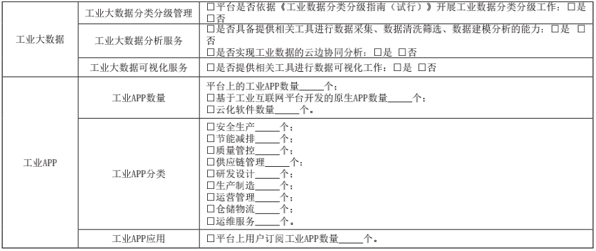 數(shù)據(jù)匯聚能力主要包括工業(yè)設(shè)備上云、工業(yè)大數(shù)據(jù)、工業(yè)APP等三個(gè)方面,從數(shù)據(jù)采集、交換、分析、管理以及面向特定場(chǎng)景的具體應(yīng)用情況來(lái)評(píng)價(jià)工業(yè)互聯(lián)網(wǎng)平臺(tái)數(shù)據(jù)要素匯聚的能力,具體評(píng)價(jià)指標(biāo)和評(píng)價(jià)項(xiàng)表2。