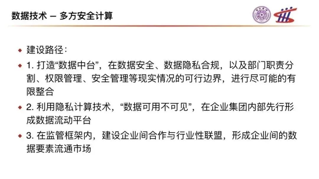 2. 利用隱私計(jì)算技術(shù),“數(shù)據(jù)可用不可見”,在多企業(yè)集團(tuán)內(nèi)部先行形成數(shù)據(jù)流動平臺;