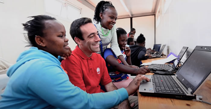 在國(guó)外,華為攜手聯(lián)合國(guó)教科文組織及當(dāng)?shù)卣毮懿块T,通過(guò)DigiSchool項(xiàng)目打造互聯(lián)數(shù)字學(xué)校,為偏遠(yuǎn)區(qū)域的中小學(xué)師生提供網(wǎng)絡(luò)連接、教學(xué)資源及技能培訓(xùn),促進(jìn)當(dāng)?shù)亟虒W(xué)的連續(xù)性、公平性和優(yōu)質(zhì)性。目前這一項(xiàng)目已在肯尼亞、南非、塞內(nèi)加爾等多個(gè)國(guó)家實(shí)施,數(shù)以萬(wàn)計(jì)的學(xué)生已經(jīng)從中受益。