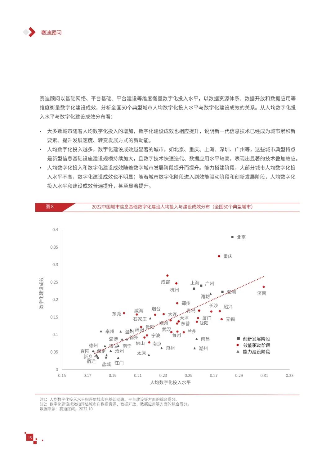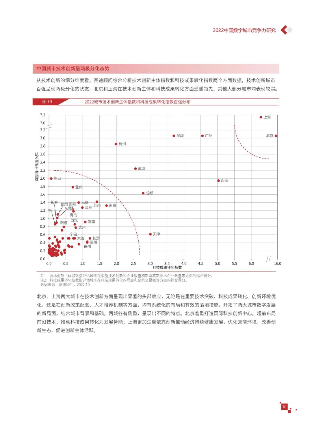 報告主要由四個部分組成,第一部分為數(shù)字城市建設新時期的背景和機遇;第二部分為全國數(shù)字城市競爭力評價的指標體系、百強榜單和百強城市特征分析;第三部分為數(shù)字城市能力解碼,從信息基礎、城市治理、民生服務、技術(shù)創(chuàng)新、低碳發(fā)展等方面分別闡述了城市各領(lǐng)域數(shù)字化水平;第四部分為數(shù)字城市建設典型實踐,挑選各領(lǐng)域建設的典型城市進行案例分析。