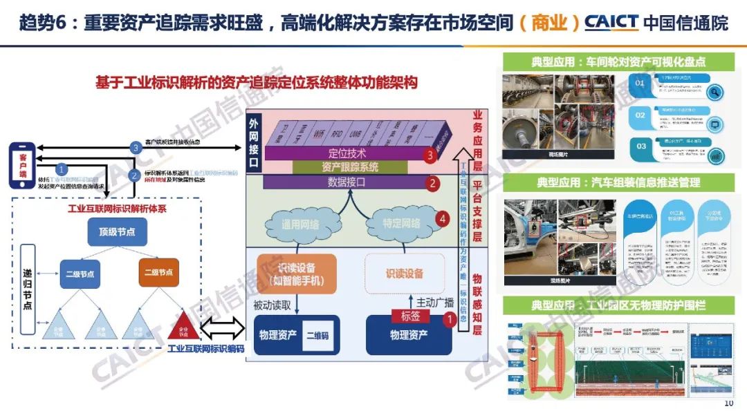 在2022年11月19日召開的2022中國(guó)5G+工業(yè)互聯(lián)網(wǎng)大會(huì)工業(yè)互聯(lián)網(wǎng)標(biāo)識(shí)論壇上,工業(yè)互聯(lián)網(wǎng)產(chǎn)業(yè)聯(lián)盟標(biāo)識(shí)工作組主席、中國(guó)信息通信研究院工業(yè)互聯(lián)網(wǎng)與物聯(lián)網(wǎng)研究所副總工程師劉陽(yáng)發(fā)布了工業(yè)互聯(lián)網(wǎng)標(biāo)識(shí)解析體系(2022年)十大發(fā)展趨勢(shì),該趨勢(shì)從運(yùn)行、設(shè)施、標(biāo)準(zhǔn)、技術(shù)、產(chǎn)品、商業(yè)、應(yīng)用、模式、治理、國(guó)際10個(gè)方向出發(fā),預(yù)測(cè)了未來幾年內(nèi)工業(yè)互聯(lián)網(wǎng)標(biāo)識(shí)解析發(fā)展的情況。